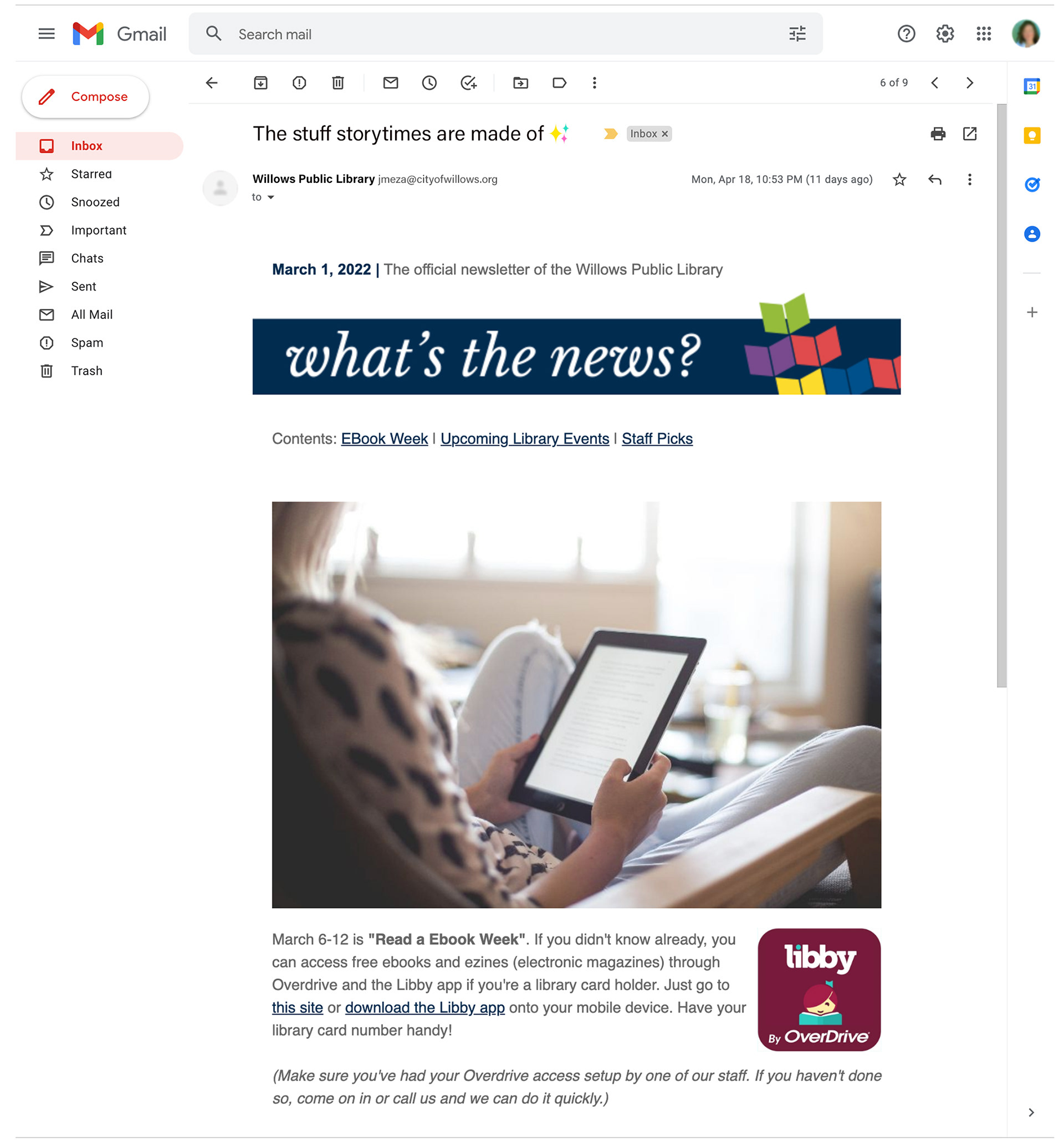 Wall display of history of Willows Public Library and surrounding Carnegie Libraries